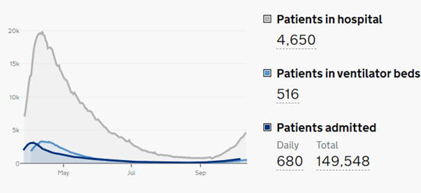 To counter another point I hear regularly: that the death statistics are over-hyped due to the reporting method (depending on which statistic is being used at any one time, some cases are counted where there has been a death in the 28 days following a positive test), this is in theory a good point. Poor use of statistics erodes the credibility of these figures. But the point is moot when hospital beds are reaching capacity.